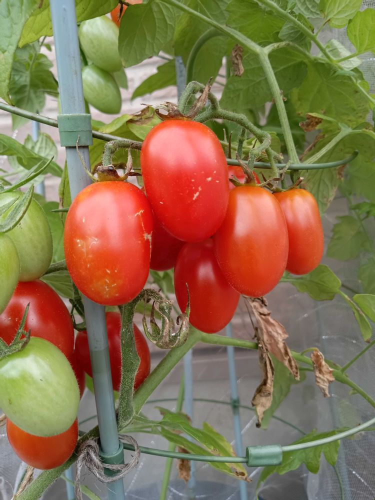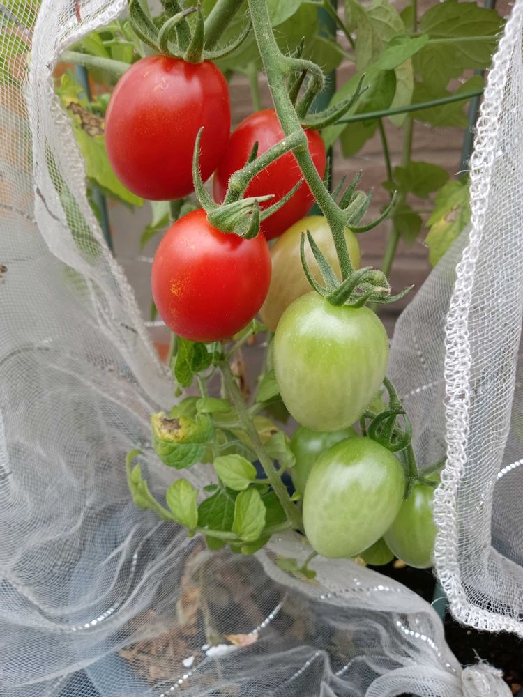 ①②鉢植え栽培のミニトマトアイコ、真っ赤に熟しました、収穫が楽しみです✨️🍅❤