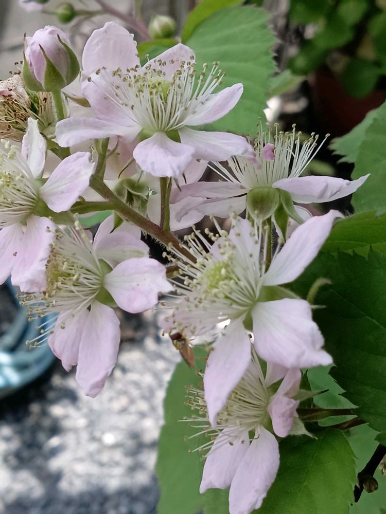 ⑤ブラックベリーのお花〜薄っすらピンクが可愛らしいお花でした✨️🩷🎶