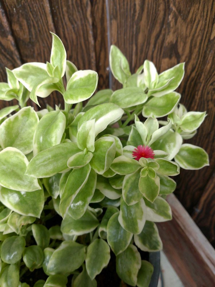 ①斑入ベビーサンローズの葉も朝より一回り小さくなっているよう🤔
