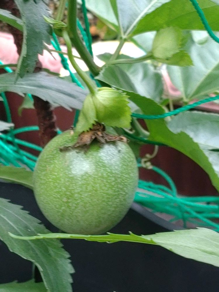 ㊗️パッションフルーツおめでとう🎉以前、実が落ちないように洗濯バサミを使い落下防止に上の葉っぱとはさみました🤗落ちないので安心だよ🙆