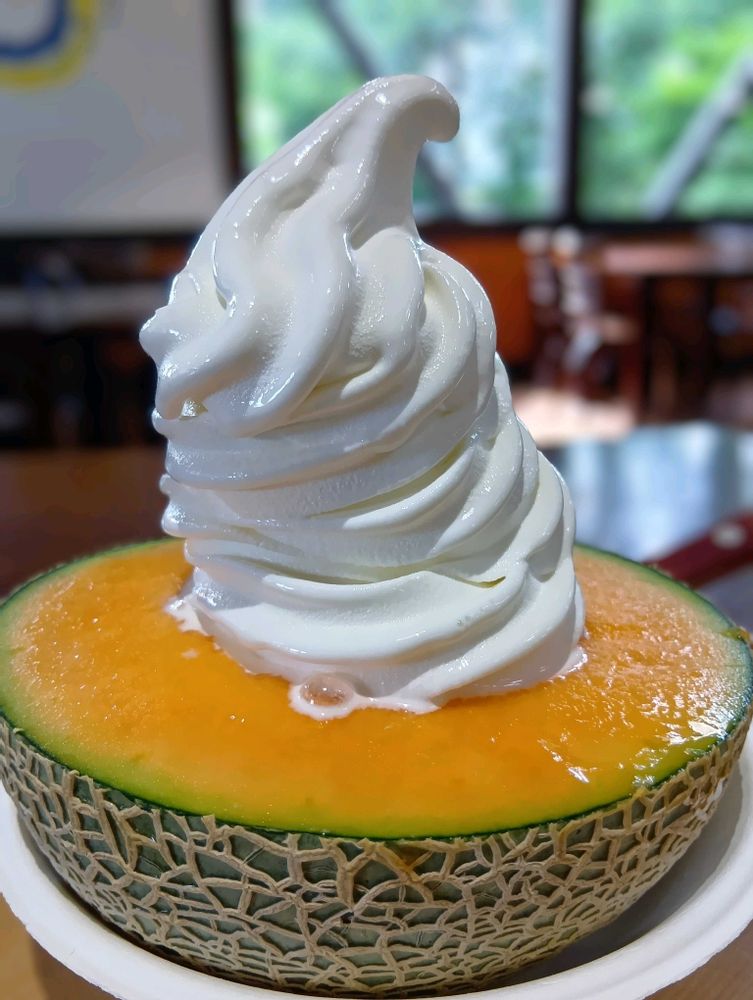 メロンにソフトクリームが乗っかってる メロンソフト😂