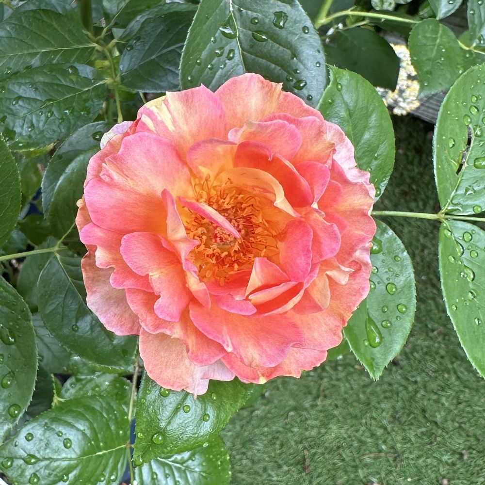 バラパリジェンヌの2番花もポツポツ咲いてきました。が、只今ものすごいゲリラ豪雨中で倒れてしまいました涙