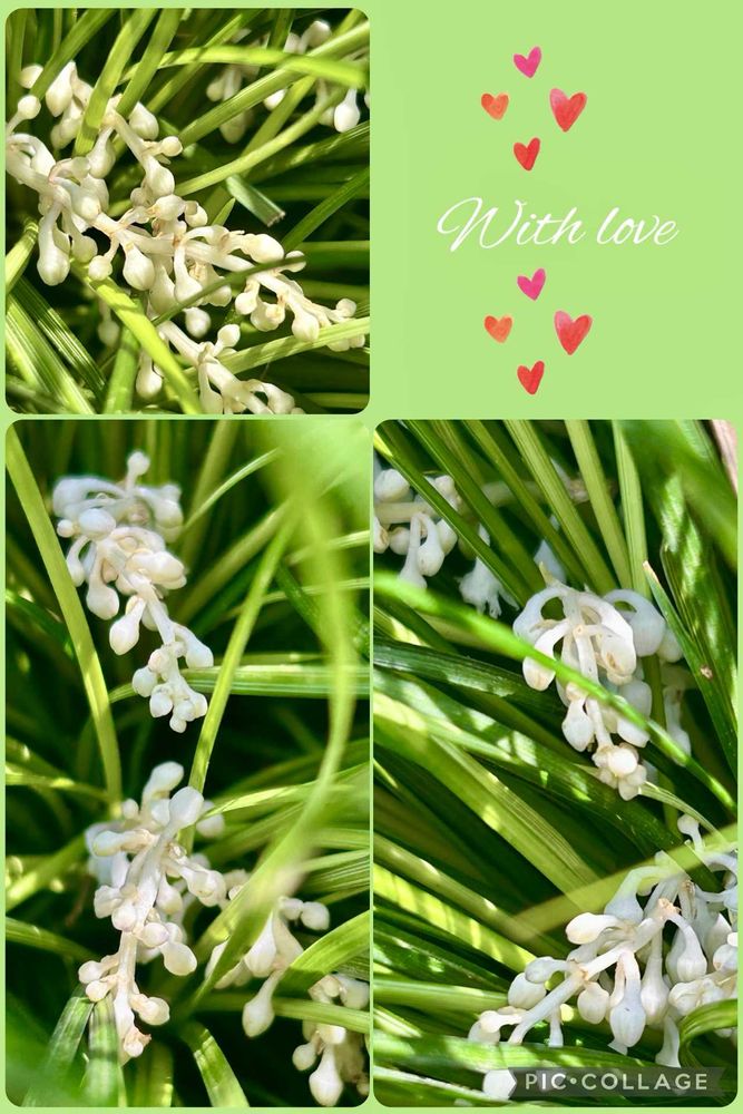 我が家の龍の髭はモリモリしているので‥掻き分けてあげないと花が見えないんです💦掻き分けたらたくさん咲いていました♡コバルトブルーの実が見れる日が今から楽しみです💕