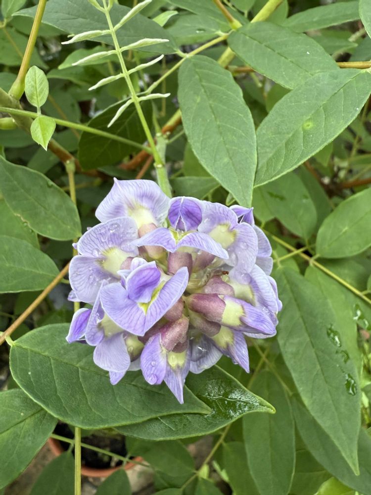 アメリカフジは日本のフジと違ってコロコロした花が咲くのです。かわいいでしょう😊
