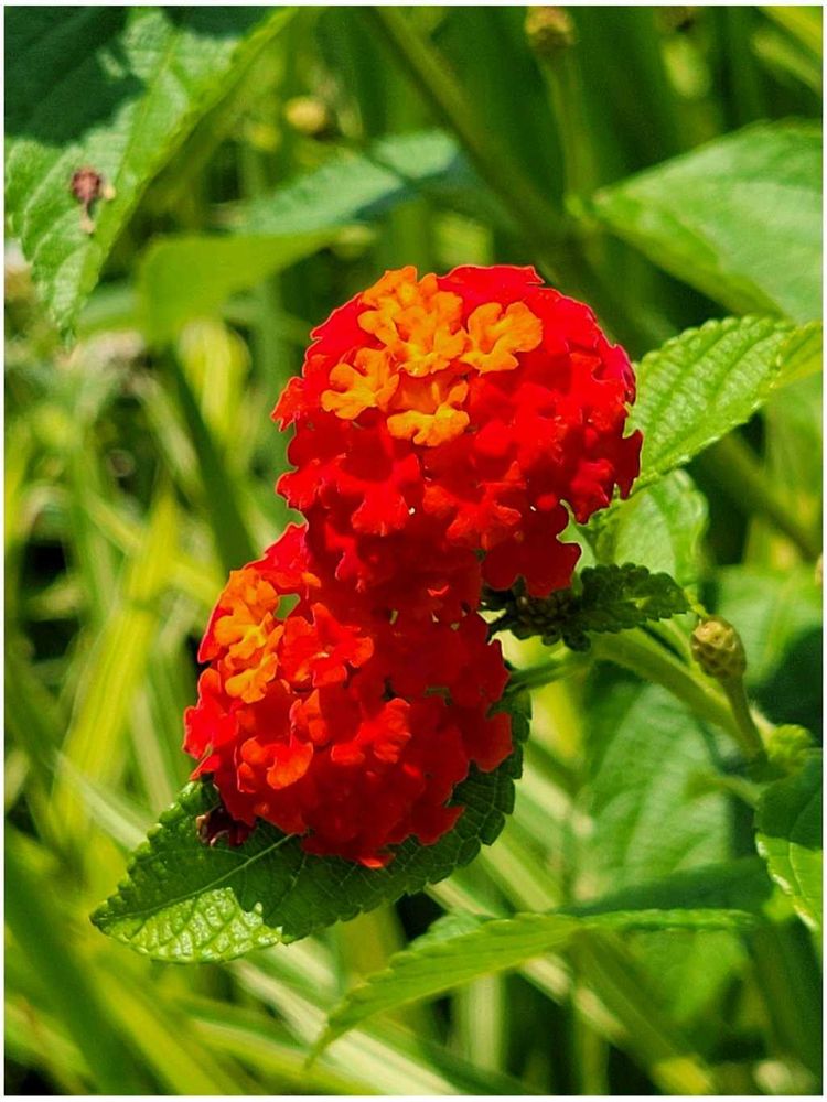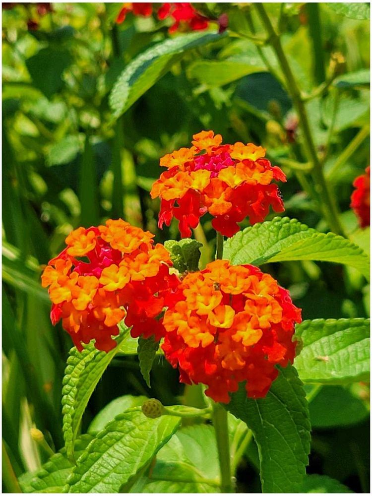赤を基調にしたカラフルなランタナさんが元気に咲いていました。