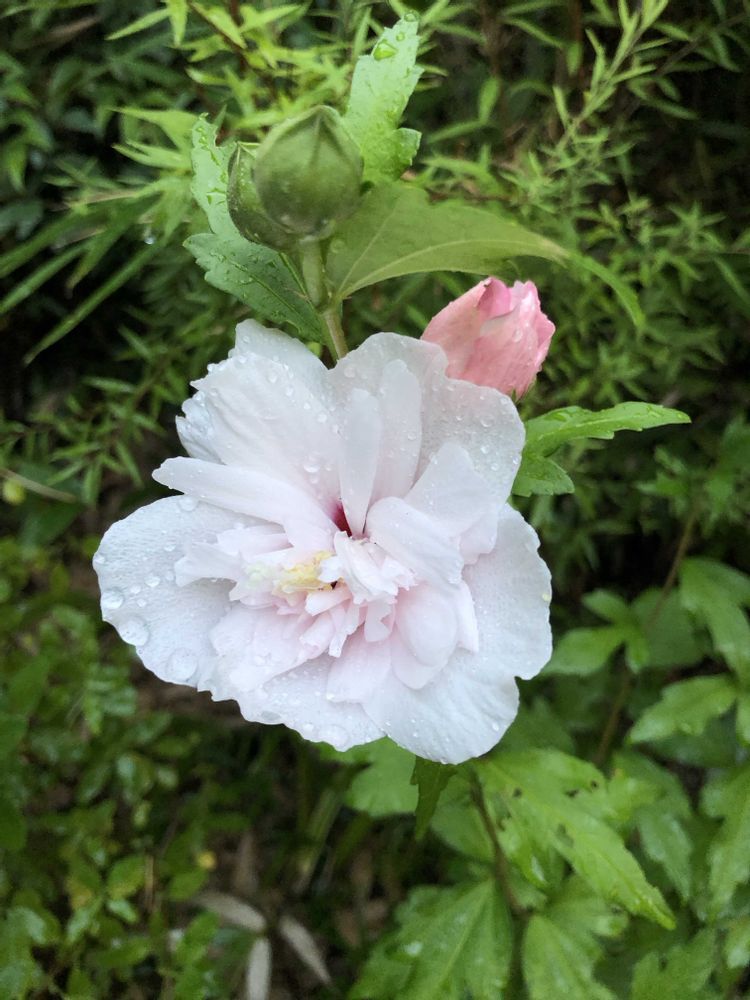 ①②ムクゲさんが毎日一輪ずつ咲いています🌸♬︎*.:*
