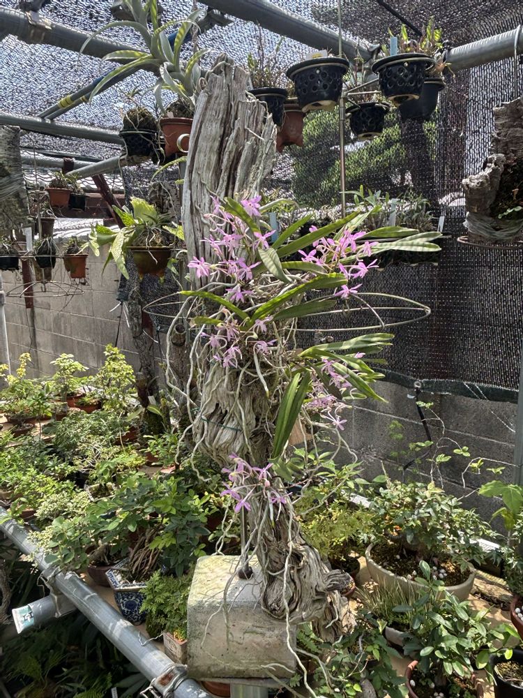 槙の古木の枝に着生し 世話なし、増えています(白)…赤が欲しくなります😆