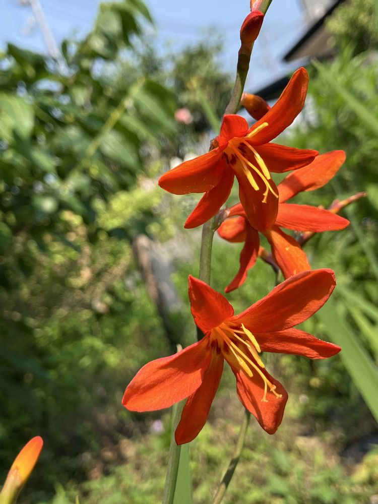 ①鮮やかなビタミンカラーの姫ヒオウギズイセン