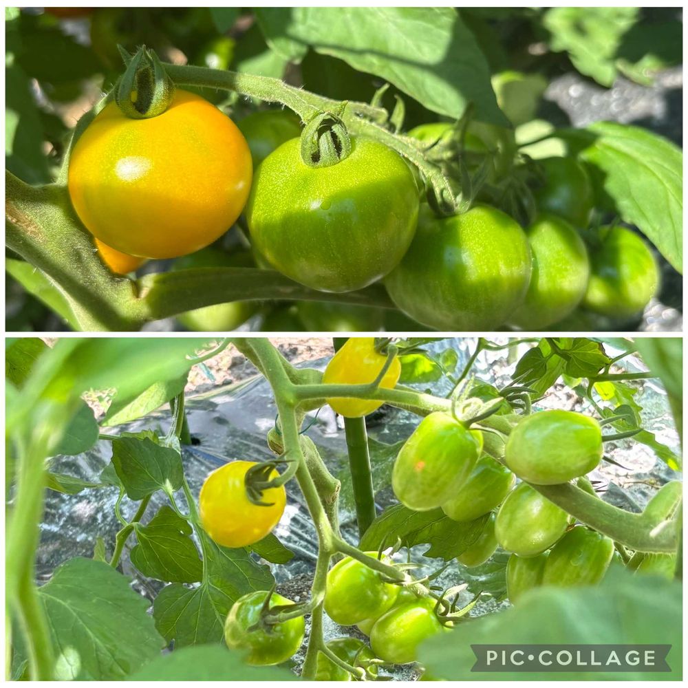 こんにちは😊 トマト🍅は徐々に収穫してますがいくつかカラス🐦⬛にやられました😫 スイカ🍉は5つに増えました〜🙌 例のミニトマトですか? 肥料足りないですかね? 実ると良いですね🎶
