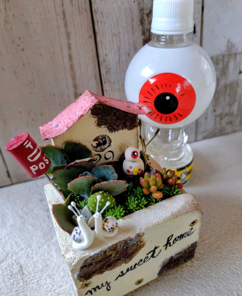 げんげんさんのミニハウス木箱🏠と、こっつんさんの🐌🐌コラボ作品~✨✨
