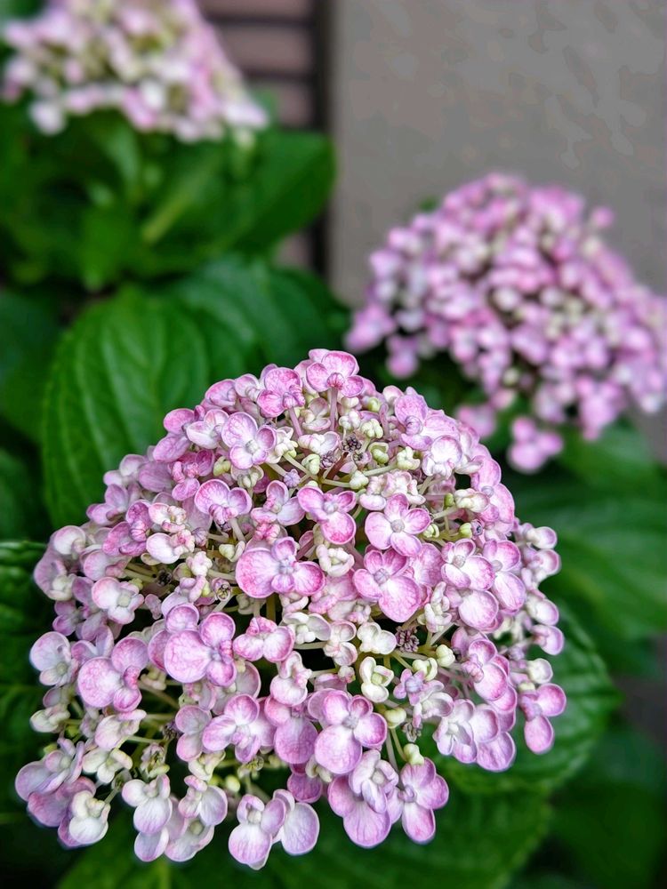 散歩道、公園近くのお家で咲いていた紫陽花。おたふく紫陽花(ポップコーン⁉️)でしょうか。可愛い💞
