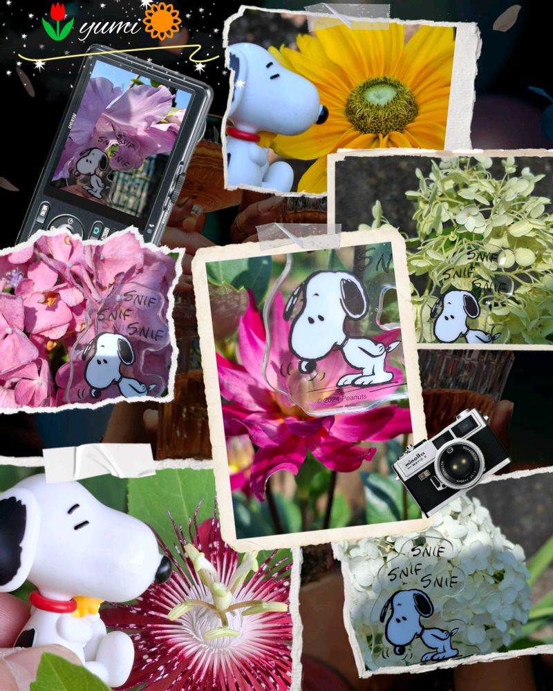 スヌーピーの日 明るく 元気なお花とのコラージュイイナァ(*ૣᵕᴗᵕ ૣ*)⌒♡.。