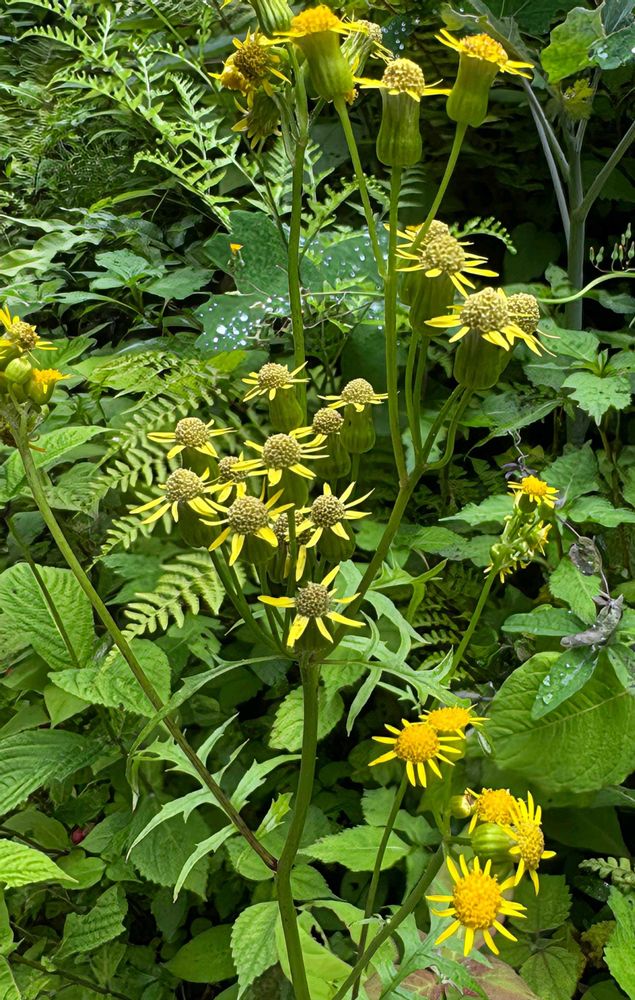 サワギクは日本固有種で、沢菊の名前のとおりに山地の沢沿いや湿り気のある林等に多く見られます。