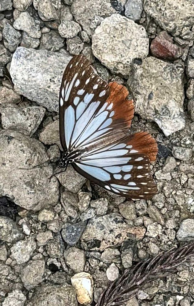 3️⃣ 道の湧き水を吸いに来たアサギマダラ🦋