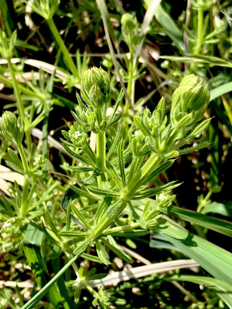 ヤエムグラとの違いのわかりやすい所は茎の上部の毛!シラホシムグラには葉腋に毛があります。