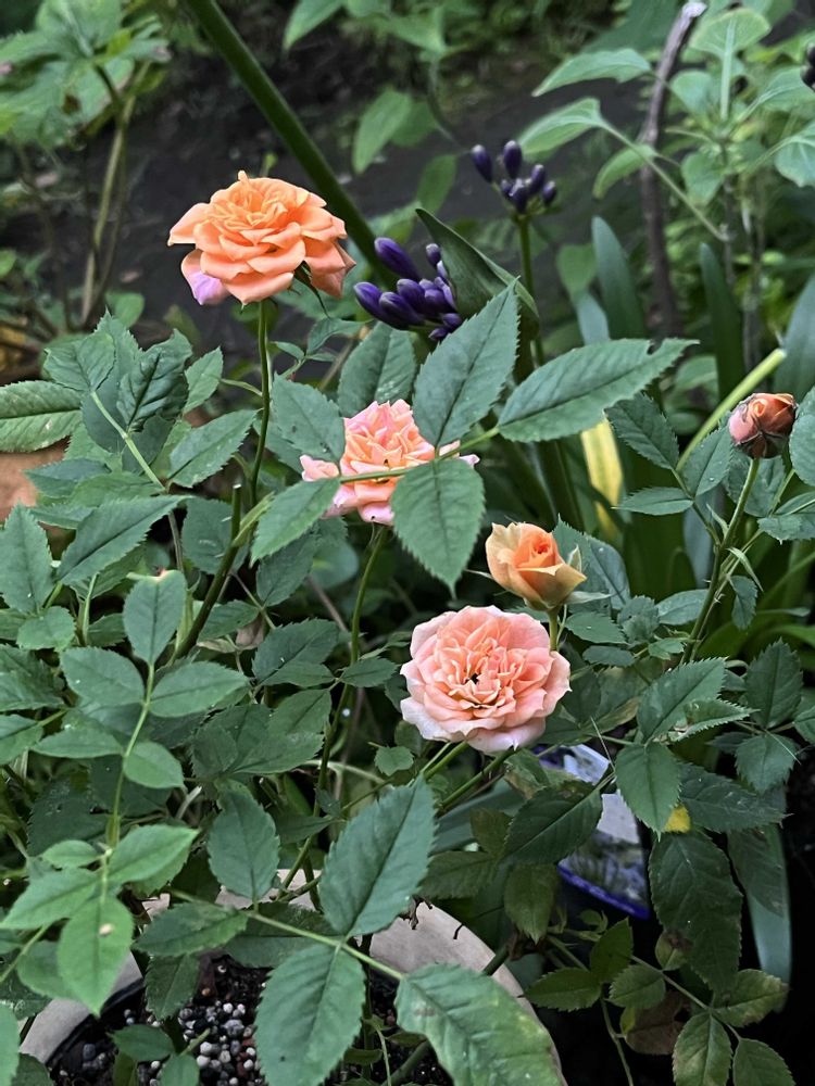 ❶ルドベキア キャラメルミックス✨✨シックでよきよき💓❷❸ミニバラ✨✨店頭で見た時ほどは咲いてないけど、咲いてくれるだけで嬉しいな😻❹千日紅 エレスチャル✨✨丈夫な花は夏の暑い日差しの中でも頼もしい👏👏👏😆