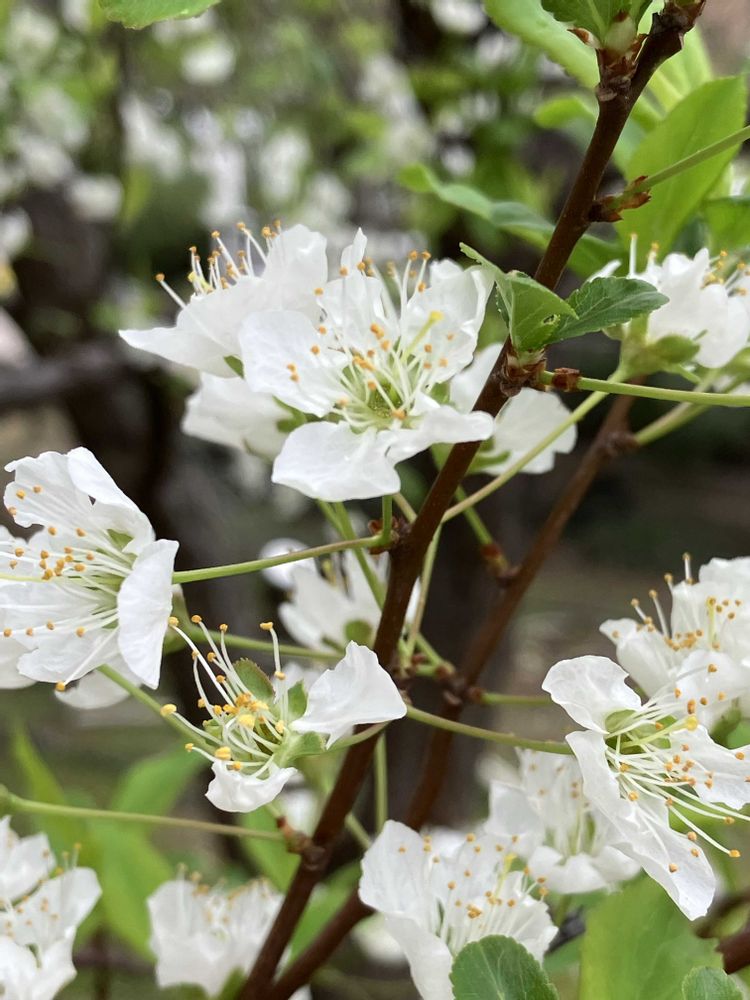 スモモはバラ科、サクラ属で、梅やサクラに似た花を咲かせます