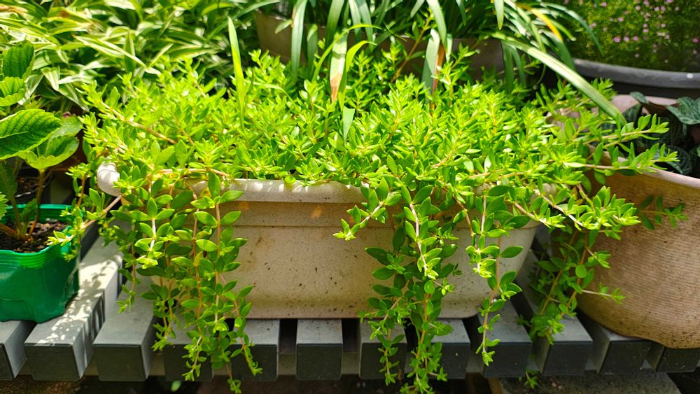 オカンが春にどっかから掘ってきたツルマンネングサさんですが、実はすっかり忘れていました。何気なしに、そういやどうなった?と思い出し見てみると、なんじゃこりゃ?ワシャワシャだし垂れてるし。