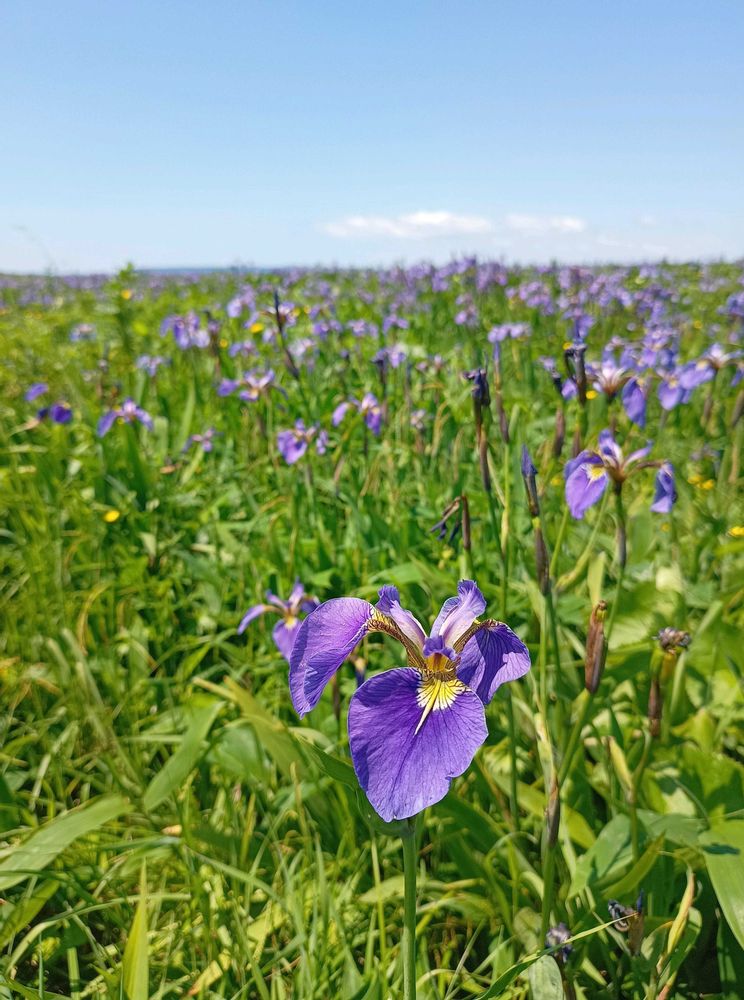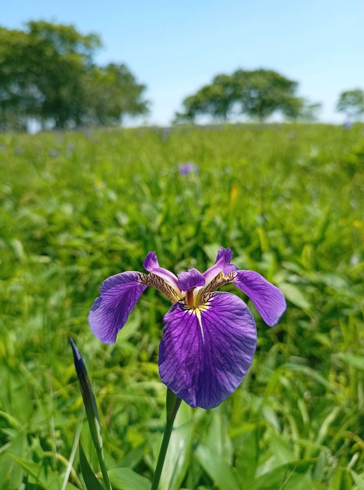 壮大な景色の中、アヤメの群生、とても素敵💜💜💜