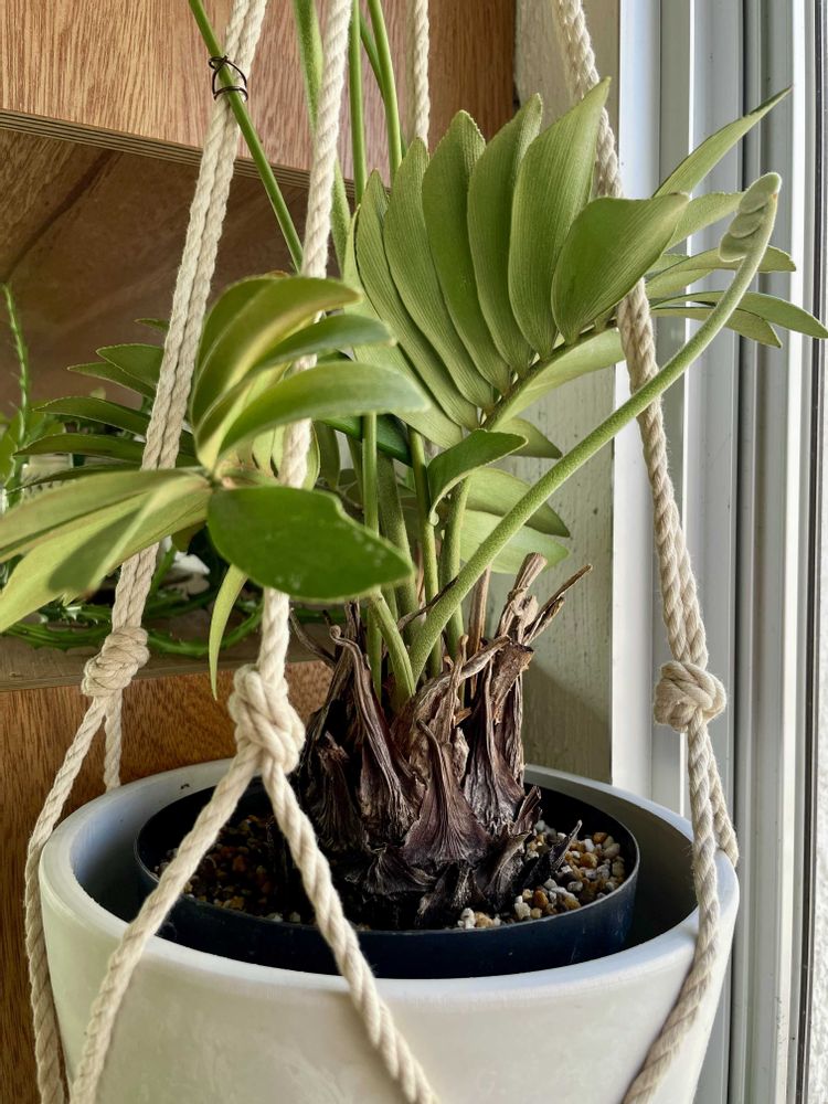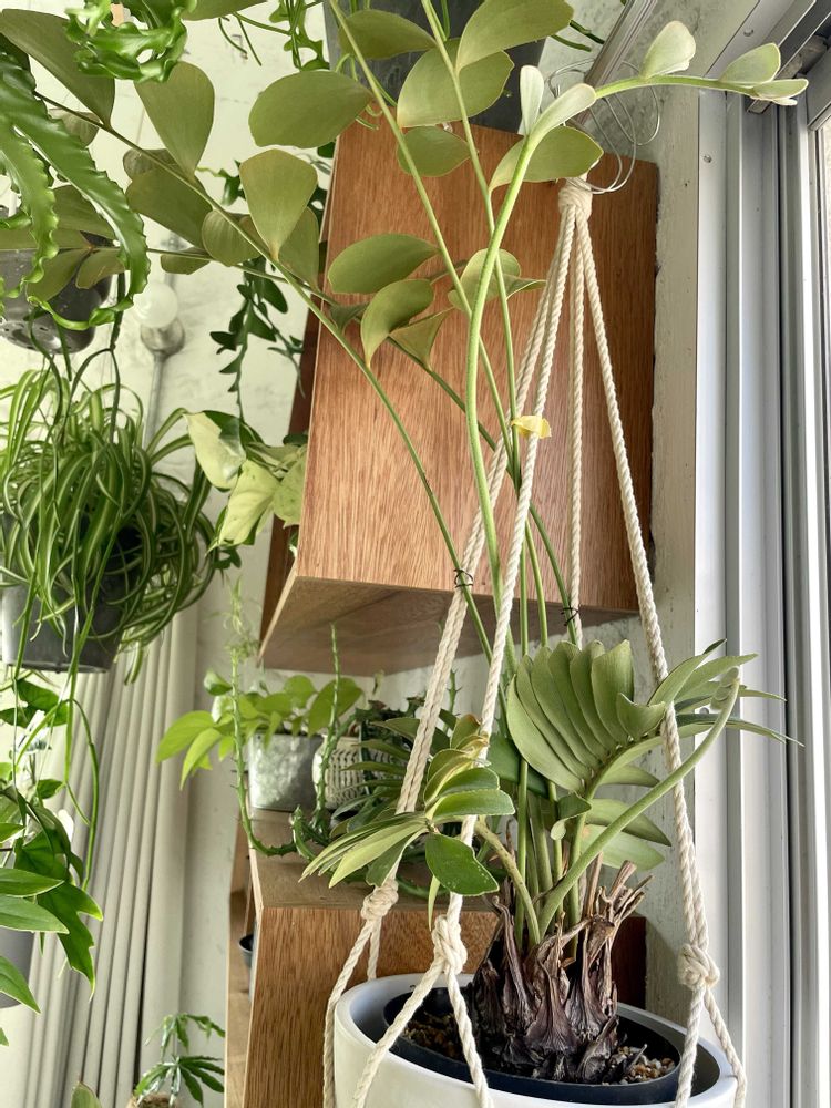 🌿と🪴をメインに🐈⬛🎞️📚🍺 チラチラ登場するグレイの猫は洋猫風ですがワイルドな環境から保護された元野良猫🐈⬛ 葉っぱ齧っちゃうこの子のお陰でハンギングは得意