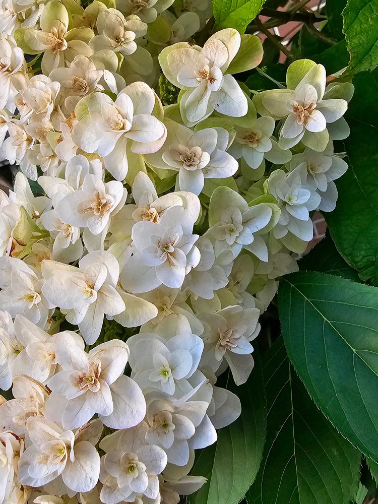まだ白色なんですね…うちのカシワバアジサイは、アンティーク色になって、それはそれで綺麗です🤗