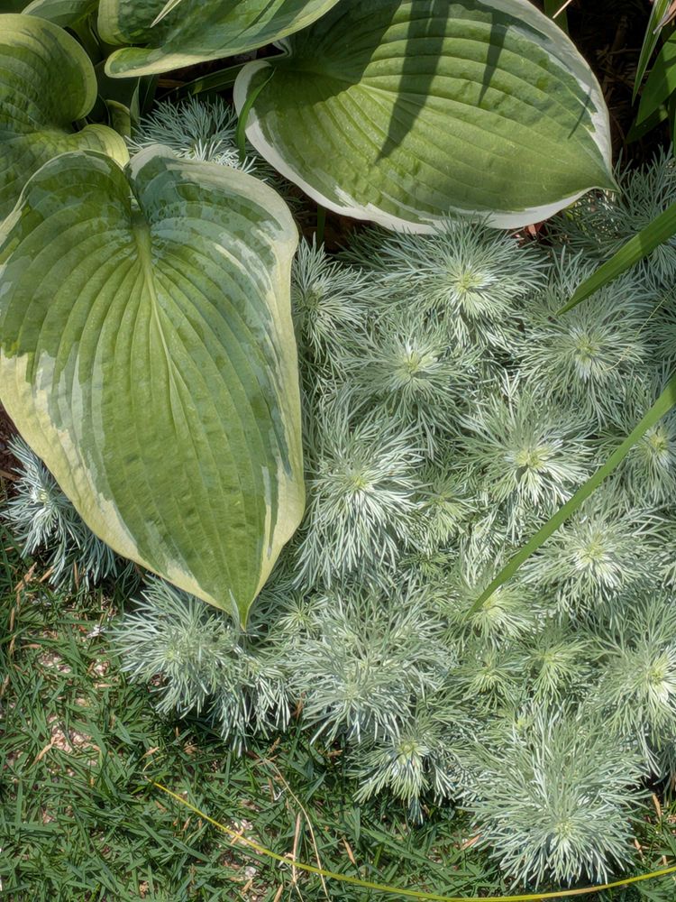 1️⃣斑入りのホスタとアサギリソウの組み合わせ 涼しそう