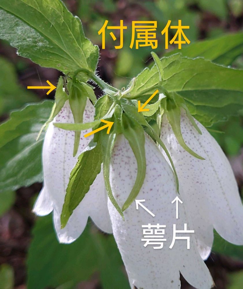 (※変種のヤマホタルブクロは萼に毛がなく、萼片の付属体がなく、湾入部分はふくらむだけ)