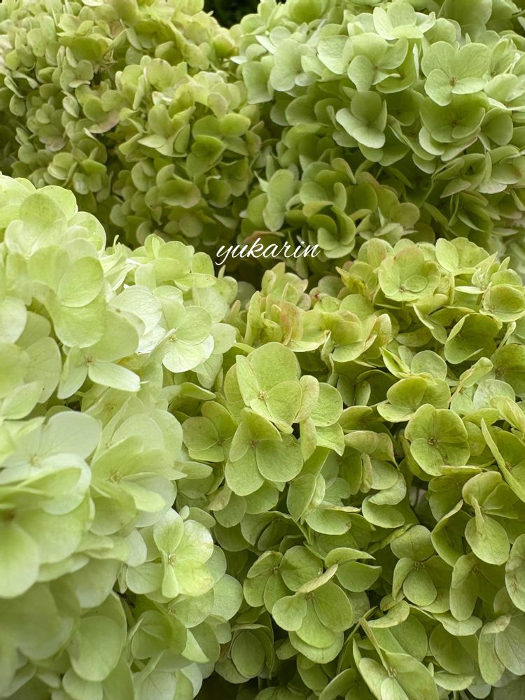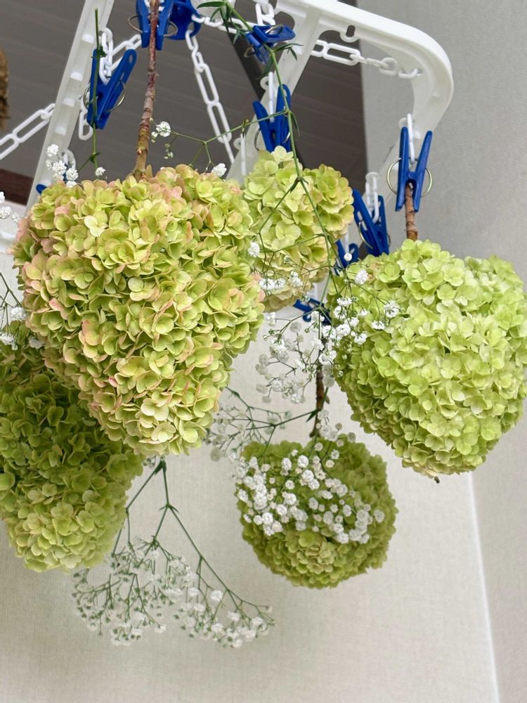 柏葉紫陽花ハーモニーが咲き進みホワイトからグリーンに変わったのでドライフラワーにする為カットしました✂️