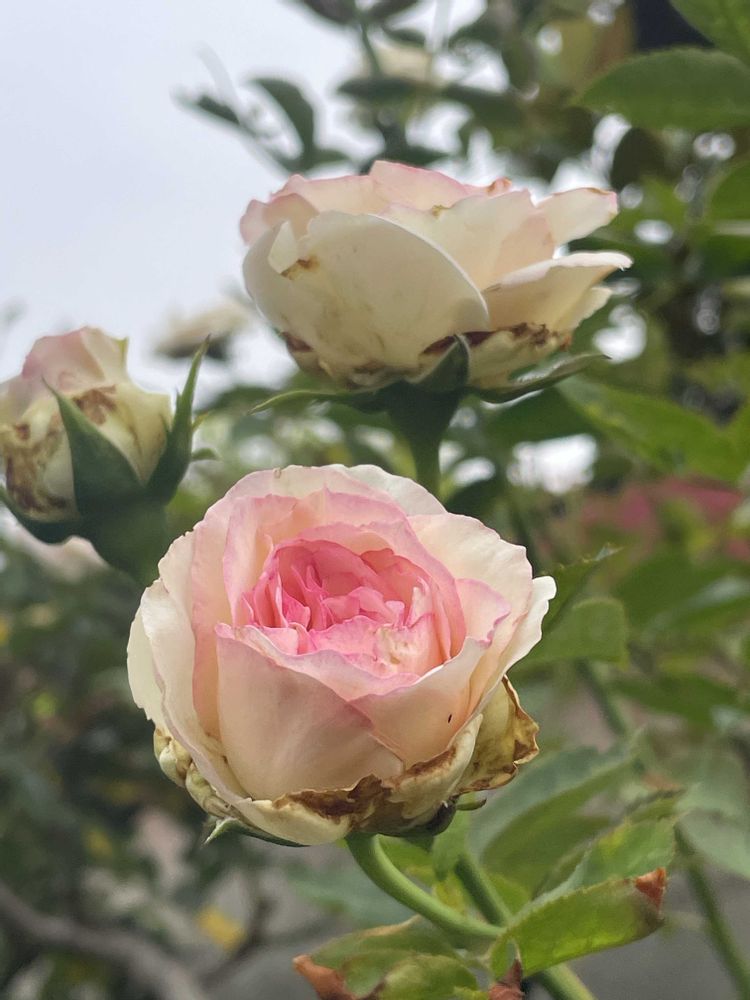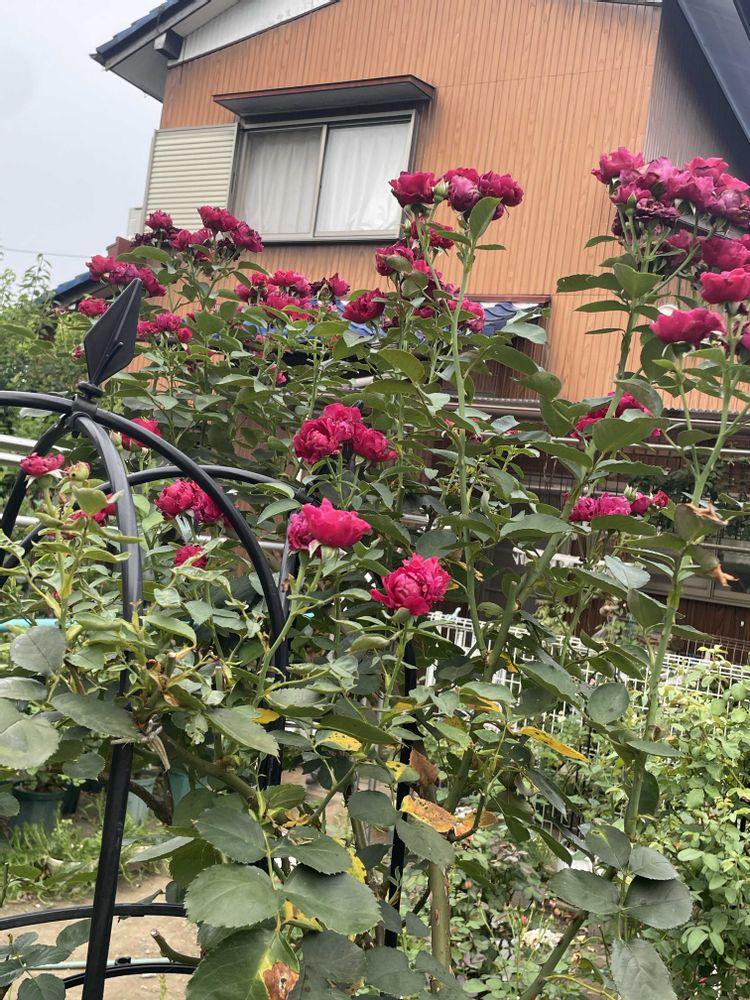 オデュはお隣のカミーユがカミキリで 弱って小さくなってしまったら 陽当たりが良くなったのか お花が沢山付きました♡こちらもカミキリ疑惑が有るので様子見です🤣うちも葉っぱが黒星だらけで 残念になっています😭