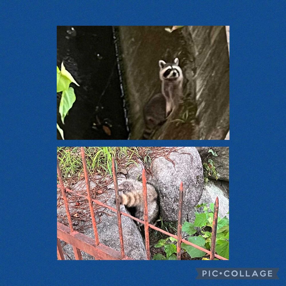 ④昨日見かけたアライグマ?タヌキ?しっぽのシマシマはアライグマらしいですが..🦝