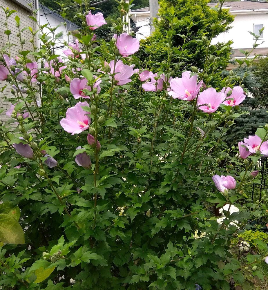 ムクゲは花友さんかいただいた八重咲きの可愛い子ちゃんがいます。まだ花数が少ないですがこれからが楽しみです💗