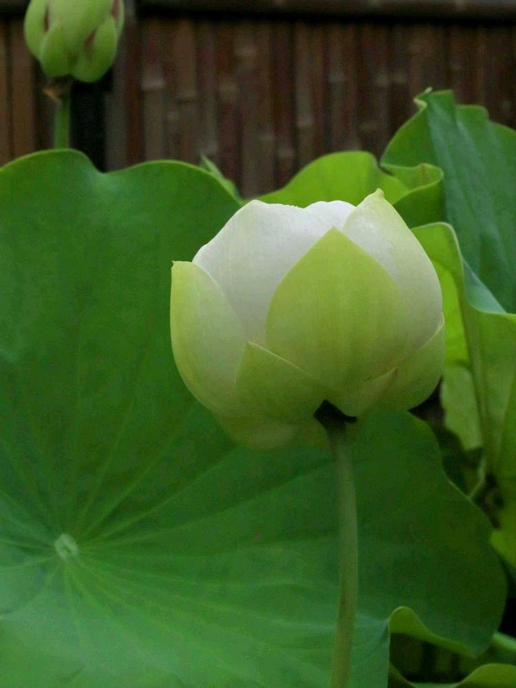 ②「碧台蓮」一番花初日♪ ③「小舞妃」一番花2日目 ④本日の様子
