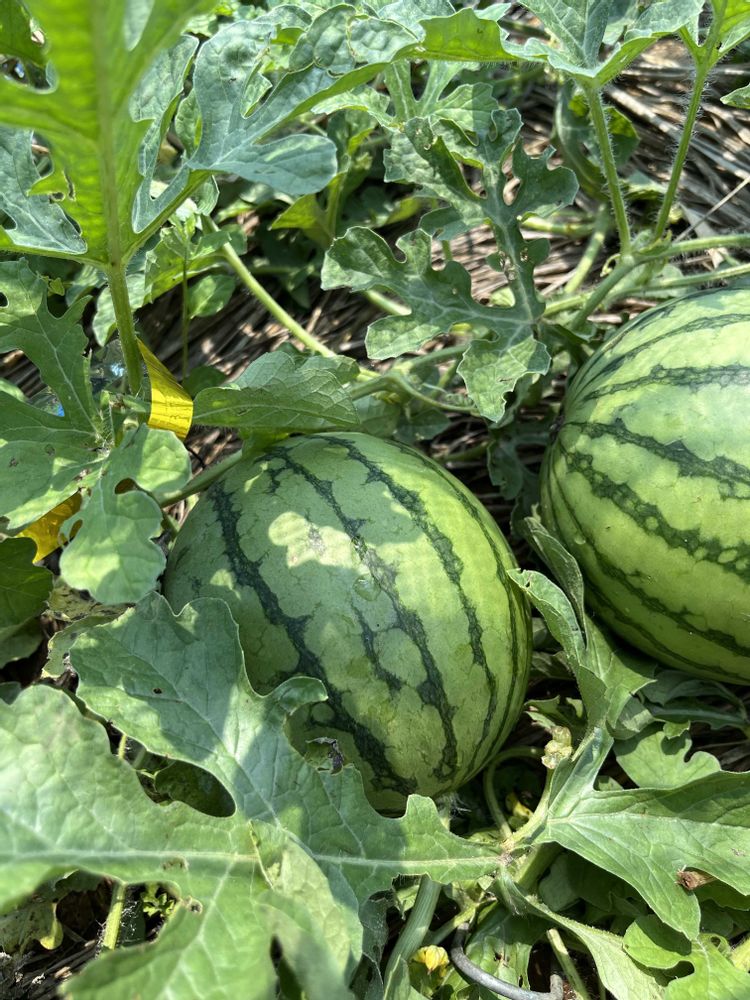 スイカは大きくなって小玉じゃないみたい…暑いので果物は甘いでしょう🤗