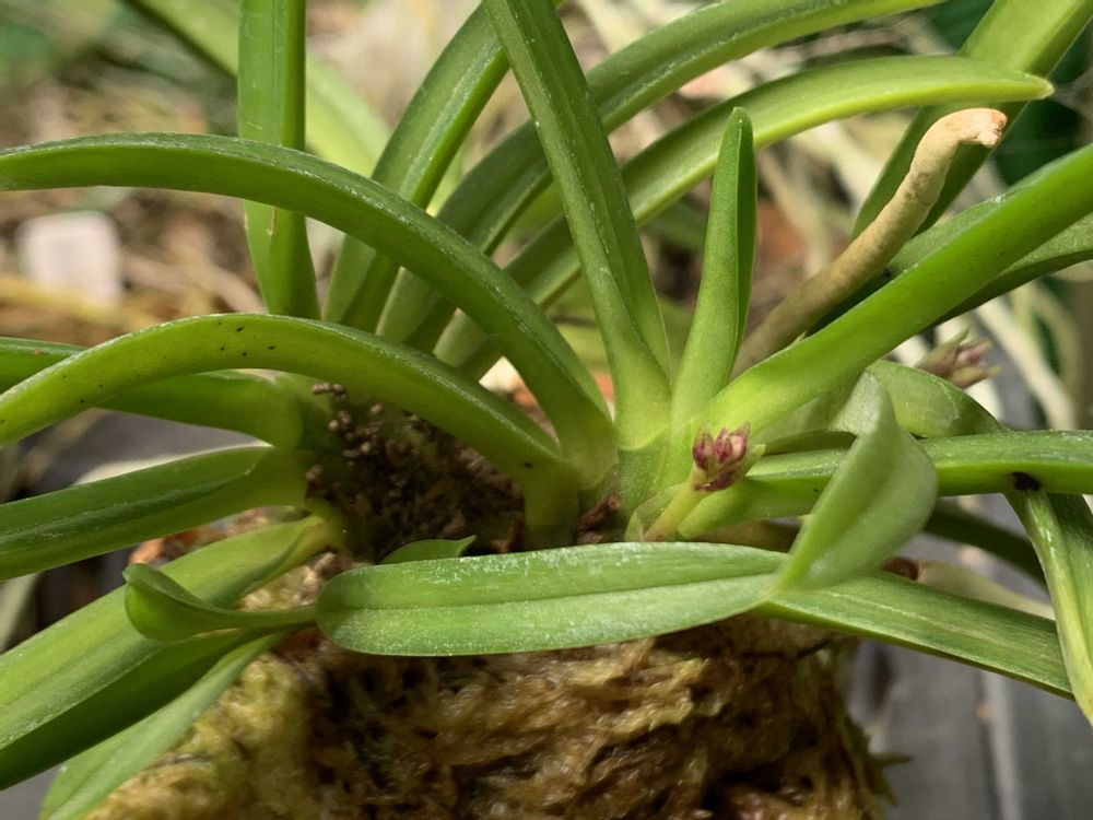 ナゴランはもうそろそろ終わります😅風蘭にやっと花芽が出てきました😀梅雨だからと無理矢理株分けしたワイルドルッコラのセルバチコが、いきなり梅雨明けして瀕死だったのが息を吹き返してきました😅ヤレヤレです😅わが家のスヌーピー🐕カールくん🐕にガリガリ君ソーダ味をあげました😀33℃で犬舎も暑い、扇風機2台体制です💦