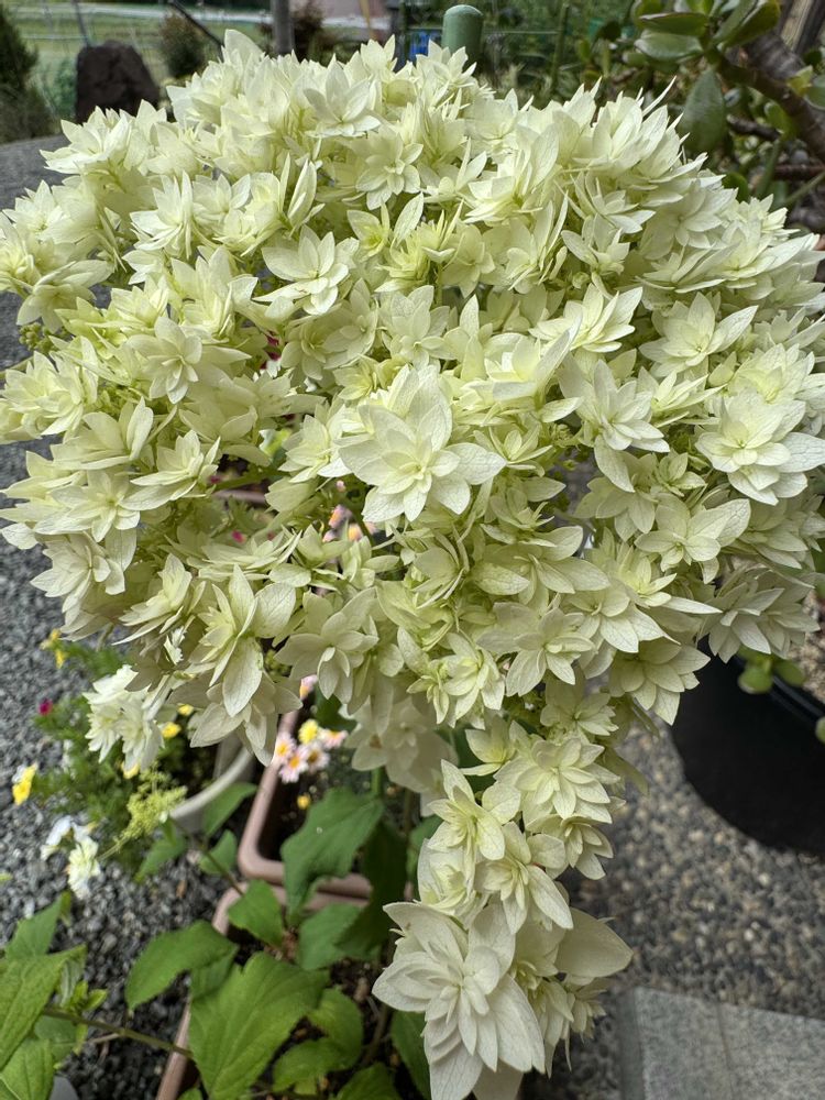 2枚目・我が家の八重咲きアナベル『ヘイズスターバースト』がもこもこしています😄
