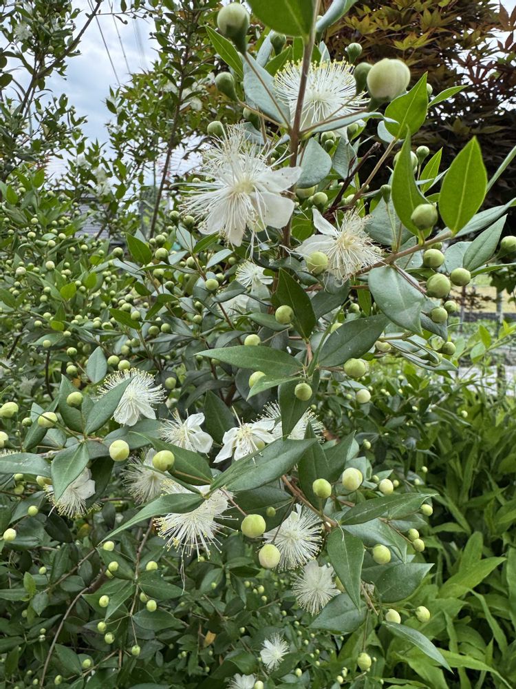 3枚目・義両親の金婚式の時に頂いたお花『ギンバイカ』です。今年はこれでもかと思うほど咲きました(笑)