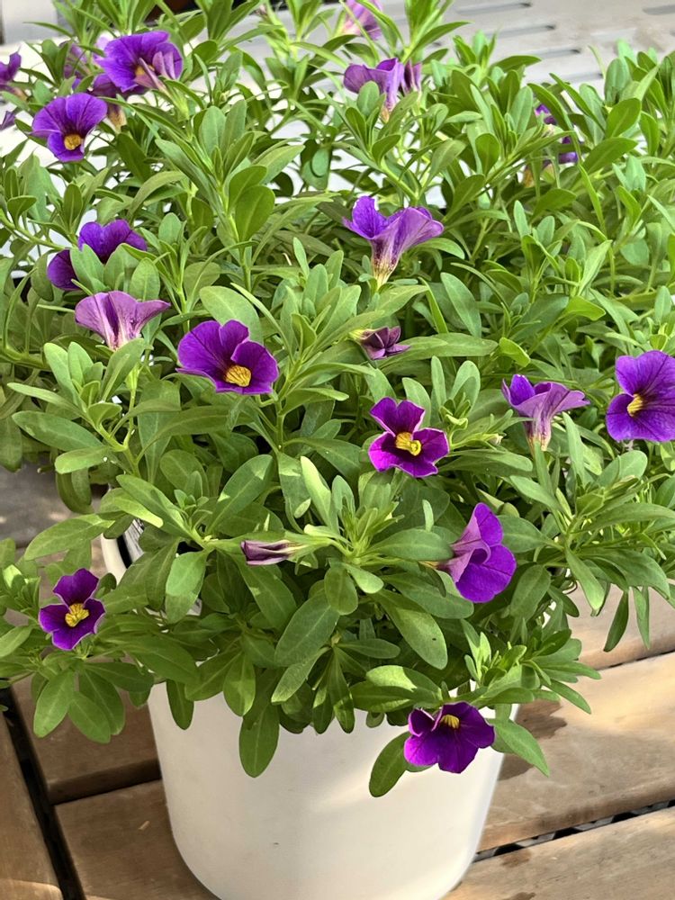 こんにちは☀️ 7月もよろしくお願いします🌴😆 1️⃣梅雨前に切り戻したPWスーパーベルポケットブルー✨花が咲き出しました☺️ 2度目の夏を過ごしていて♬ 元気です🩵