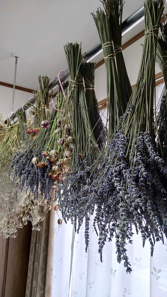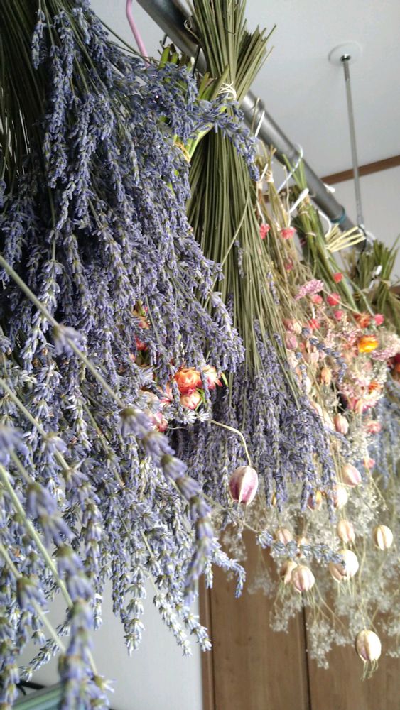 ドライフラワーにする時期が遅いとラベンダーもパラパラ散ったり、帝王貝細工は中心が弾けてしまいます。逆に柏葉紫陽花は早目に切ると水分が多すぎて花びらが縮れてしまうのでなるべく遅い方が良いです🤗