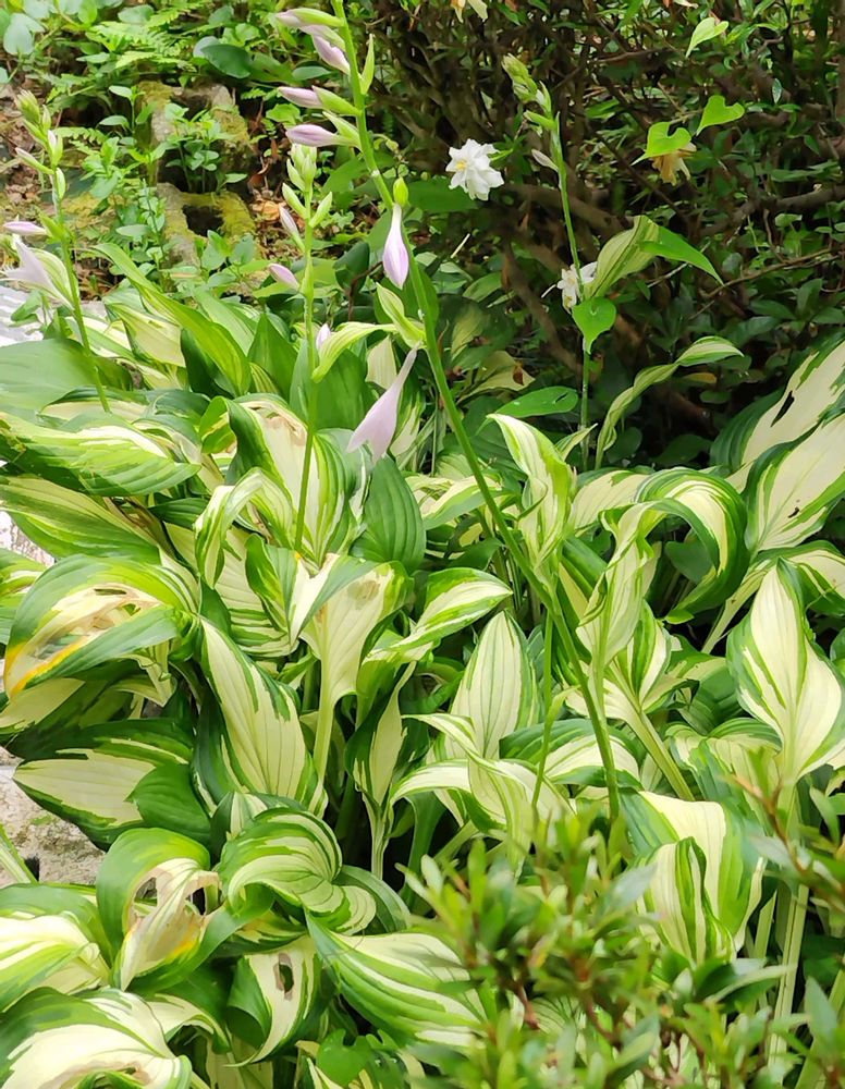 ①②③斑入りギボウシ咲き始めました💮🤍💚