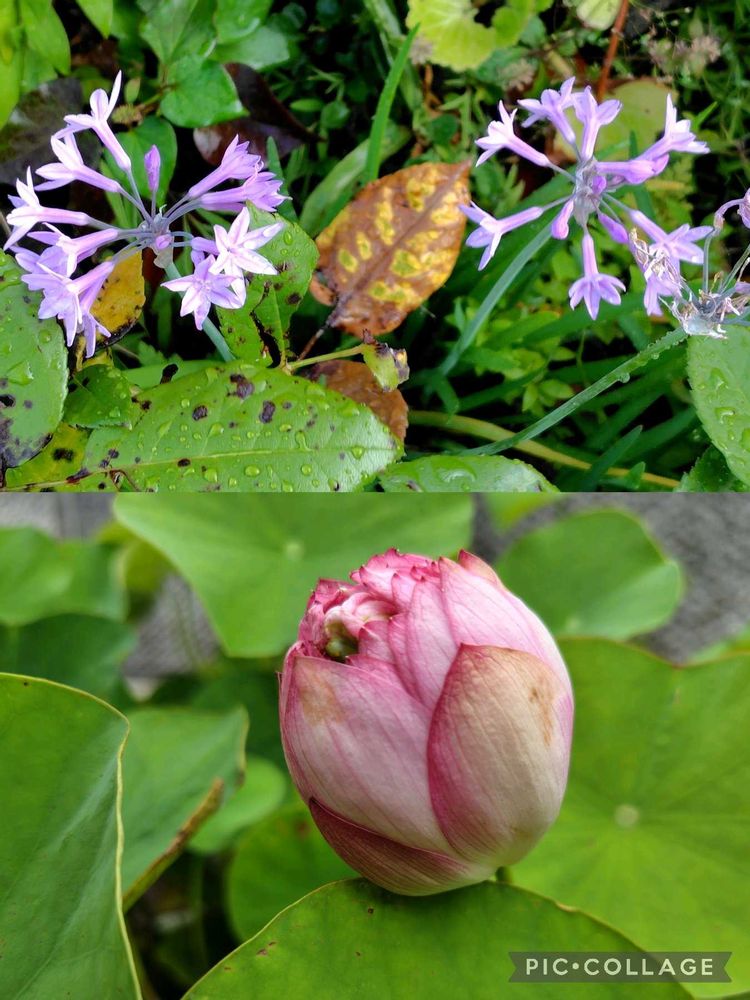 ④花が増えてきたツルバキア 明日にも咲きそうな ふっくらとした蓮の蕾でもまだまだだと思う