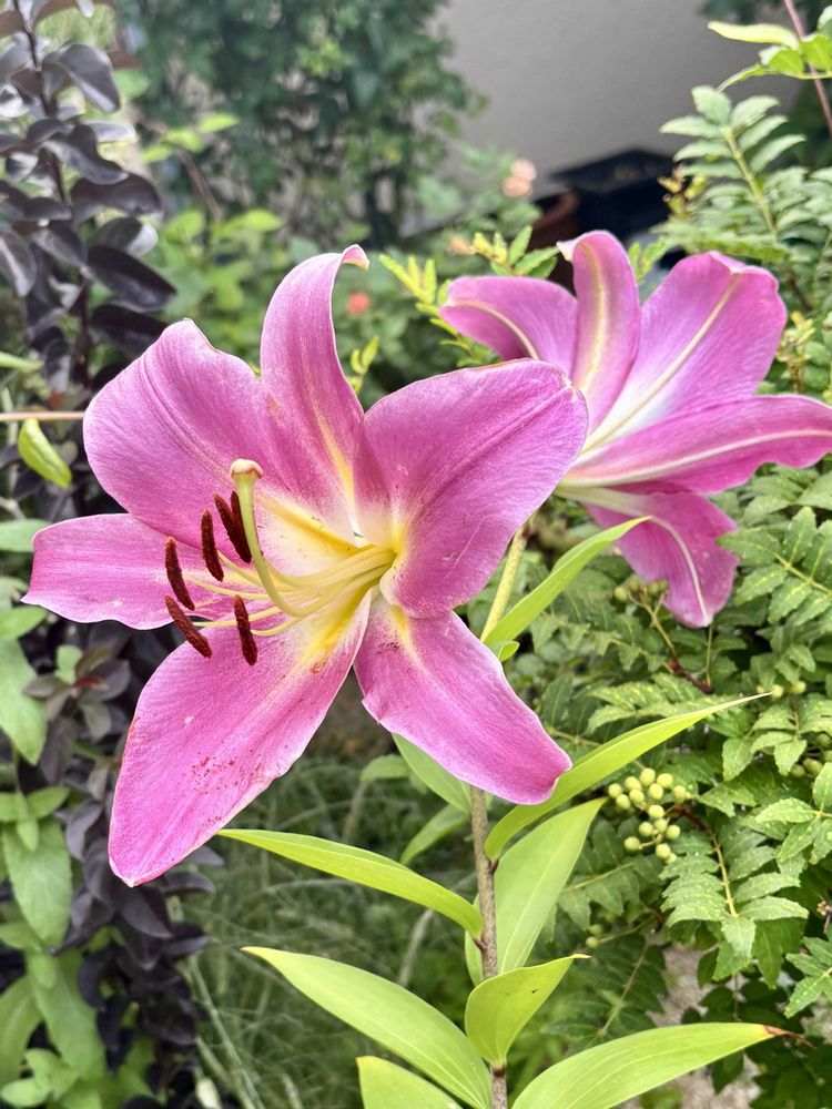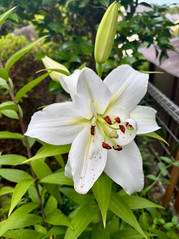 🔥34℃続く今日の庭😫カサブランカが咲き出して百合の芳香☀️夏庭に耐えている💦