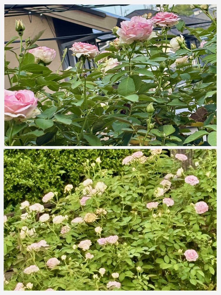 ⑤ピエールドゥロンサール2番花🌹手が届かないので放置だけど😅2階から見ると結構咲いてるぞ💕