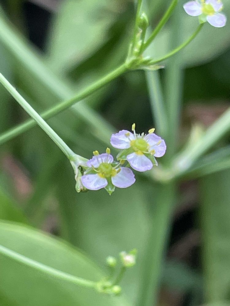 水辺に咲く小さなこの子は、匙面高(サジオモダカ)、またはウォータープランテーンと言うらしいです😊