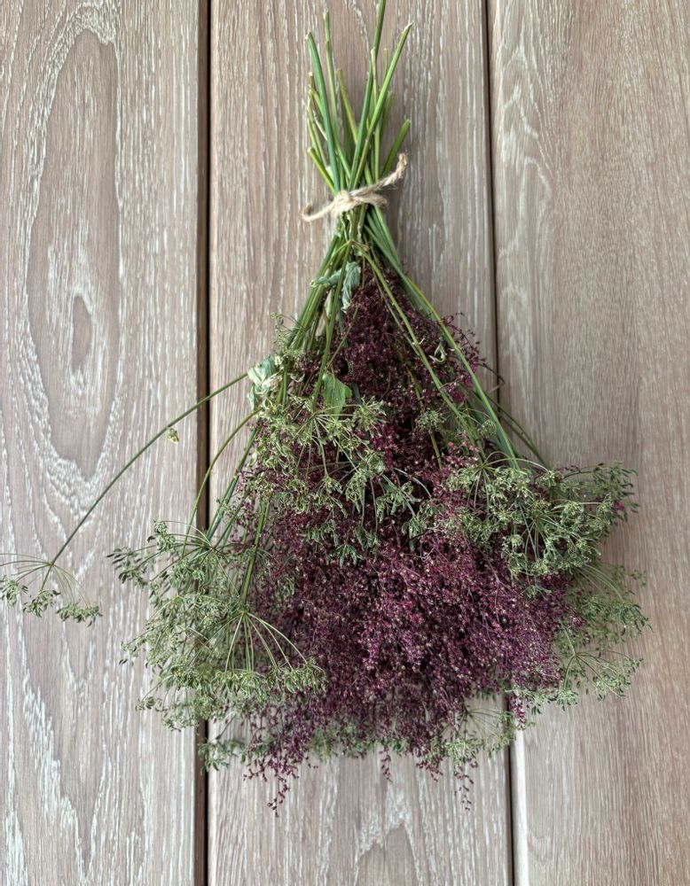 ④終わりかけたお花達を、簡単スワッグにして、玄関ドアに。