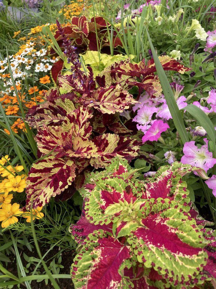 葉模様が美しいコリウス花壇