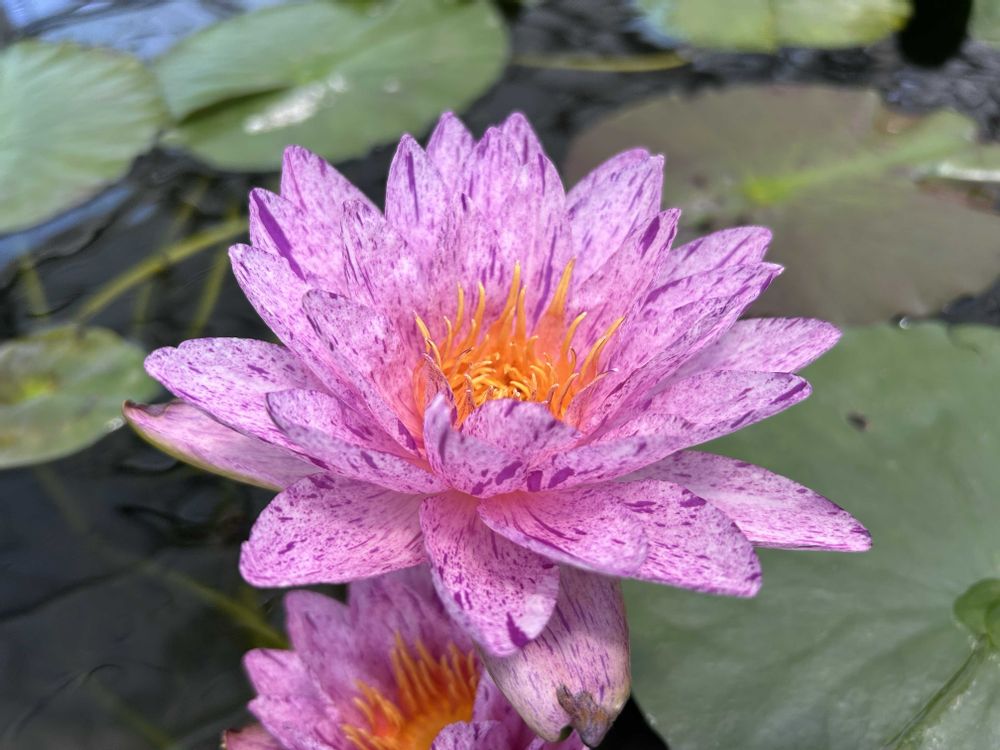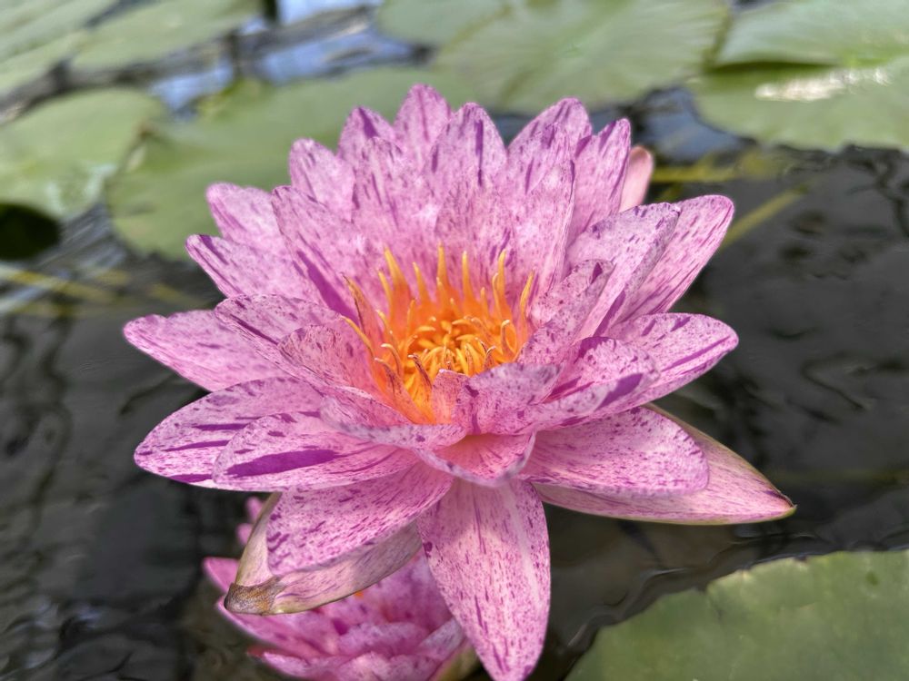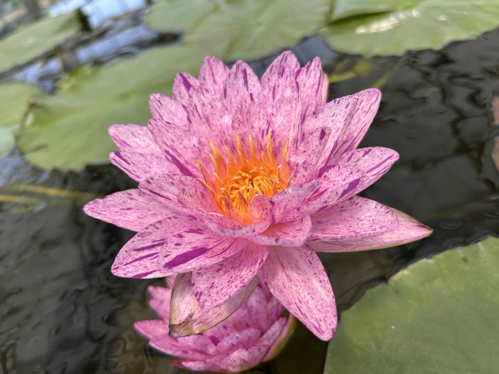 今晩は🤭♪絞り入り睡蓮🪷は近年増えましたよ!後、近年はダリアみたいな色合いの八重咲熱帯スイレンが増えましたよ!🤭