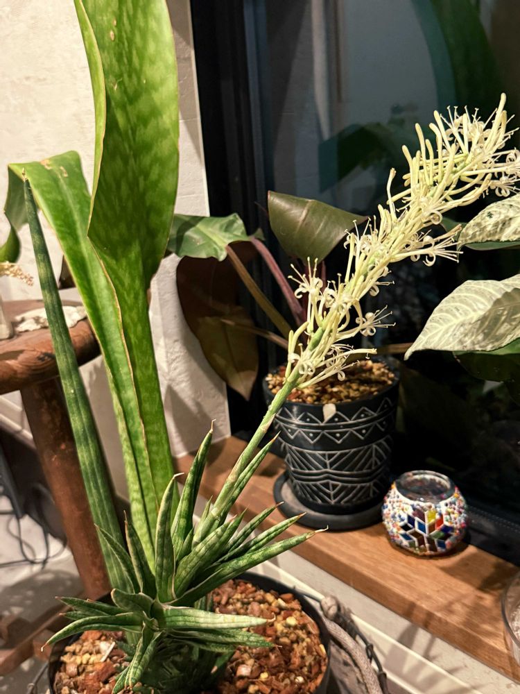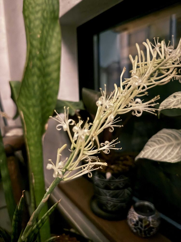 3種のサンスベリアを寄せ植えにしたのですが、フランシシーからお花が咲きました🌸