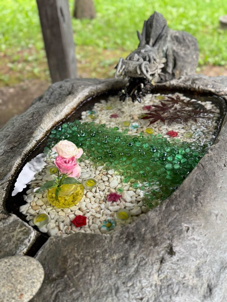 素敵なビー玉手水🔵🟢🟢🔵🔵