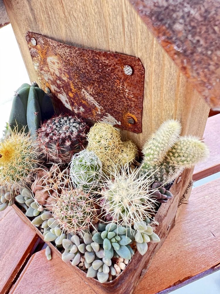 お昼に洗濯物を入れるついでに外に出たら、サボテンが目について寄せ植えしてしまいました🤣
