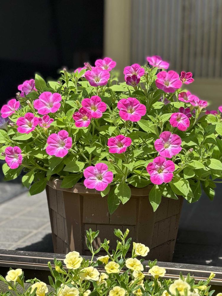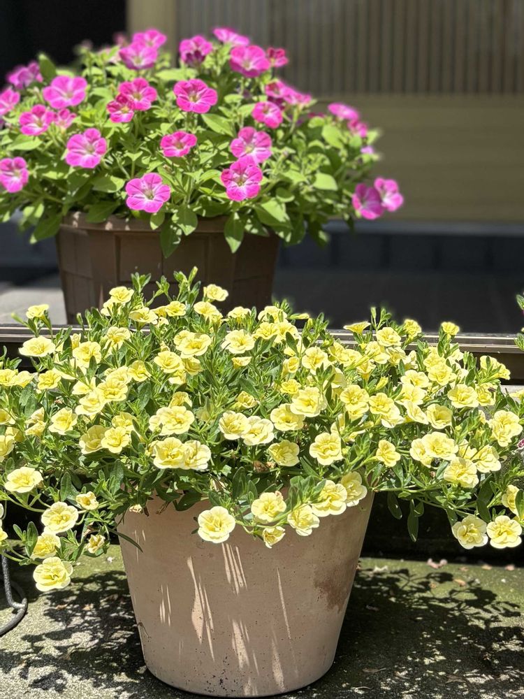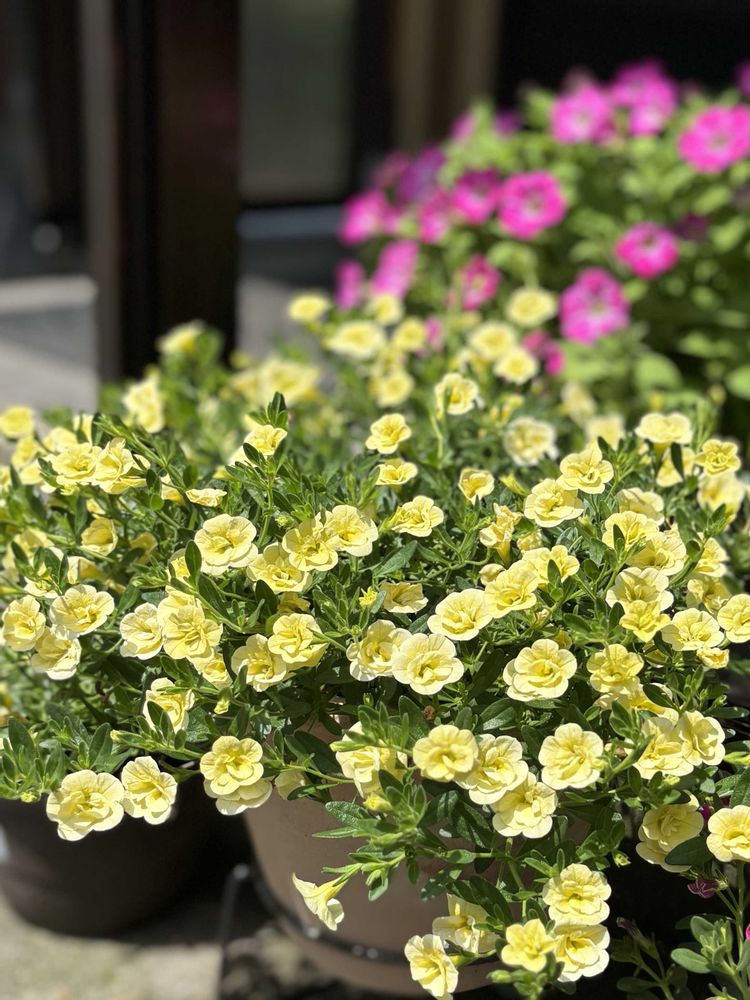 八重咲きカリブラコア・レモンイエローとサフィニアアート小梅ちゃん♡